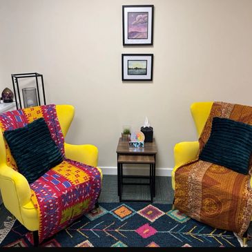 This cosy and colourful space is ideal for one-to-one therapy, coaching, or mentoring.